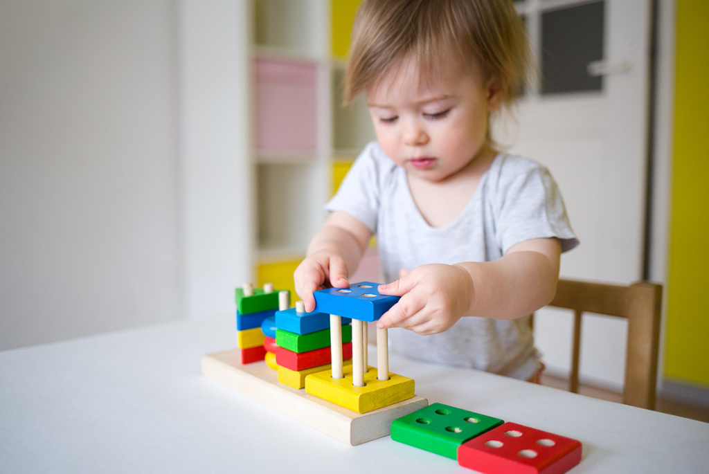 В возрасте от года у малыша начинают активно развиваться общие двигательные способности: он учится ходить, бегать, прыгать. Параллельно начинают совершенствоваться тонкие движения рук. На этом фоне развиваются новые навыки. Например, малыш учится держать несколько предметов в одной руке, удерживать кружку или столовые приборы и одновременно использовать их, нажимать на кнопки интерактивной игрушки, удерживать карандаш и чертить им, собирать пирамидку или игрушку с вкладышами.