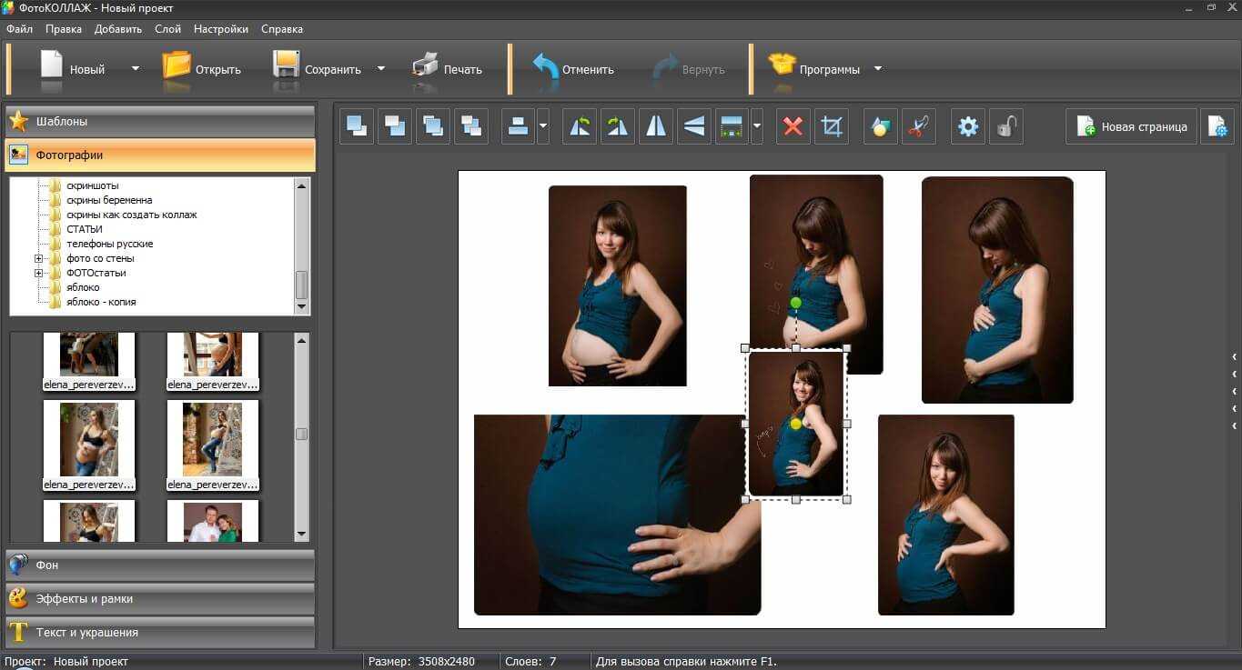 Для того чтобы отобрать фотографии для композиции, необходимо сначала определиться с идеей. Что будет иллюстрировать коллаж? Может это будет профессиональная фотосессия будущих родителей или серия селфи, демонстрирующих подрастающий животик неделя за неделей? А может быть, вы захотите привлечь к участию в съемках старших детей или разрисовать округлившееся пузико креативным боди-артом. Выбирайте тип шаблона согласно задумке.