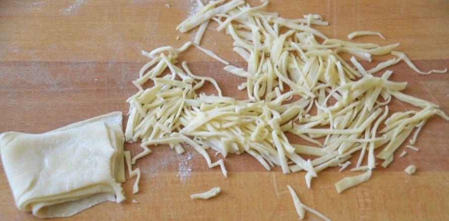 - Полученную лапшу можно высушить на плоской широкой поверхности и затем использовать по мере необходимости.