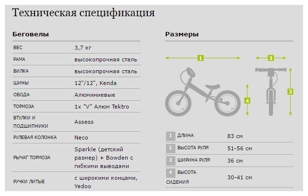 высота сиденья 30-41 смвысота руля 55-62 смвес 3,8 кг