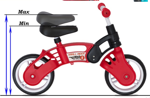 - В моделях беговел-велосипед регулируется не только прикрепление педалей, а так же в зависимости от роста ребенка, можно установить высоту руля и седла.