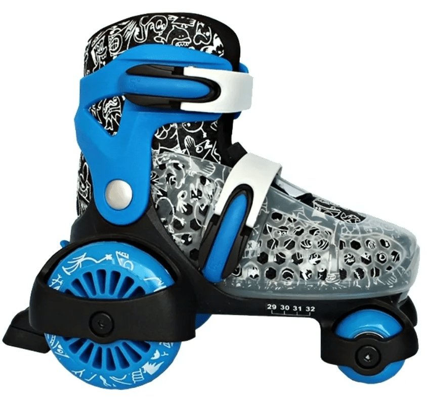 Особняком стоят раздвижные роликовые коньки, предназначенные для самых юных роллеров. Их размер можно регулировать, благодаря чему не нужно каждый год покупать новую модель для выросшей ноги ребёнка.