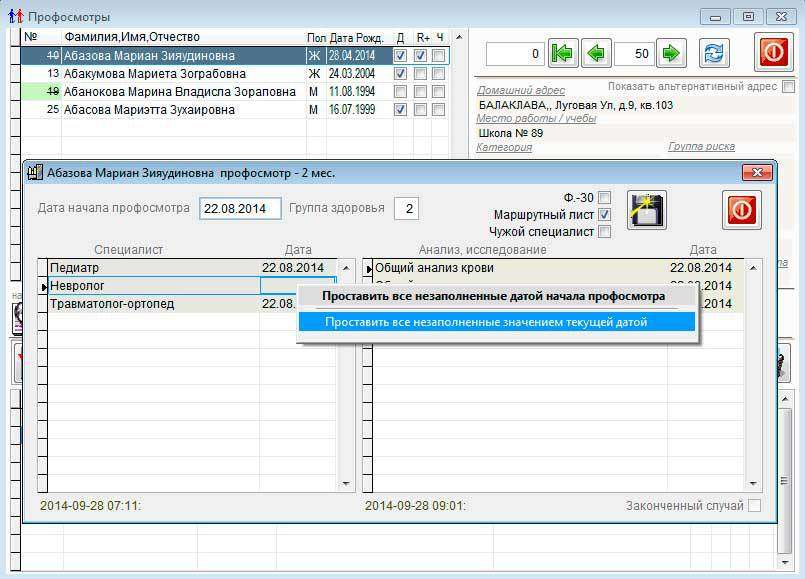 Для редактирования существующего профосмотра достаточно сделать двойной щелчок по соответствующей строке таблицы, для добавления нового, тоже, только по красной строке «Запланированный». При этом откроется форма заполнения текущего профилактического осмотра: