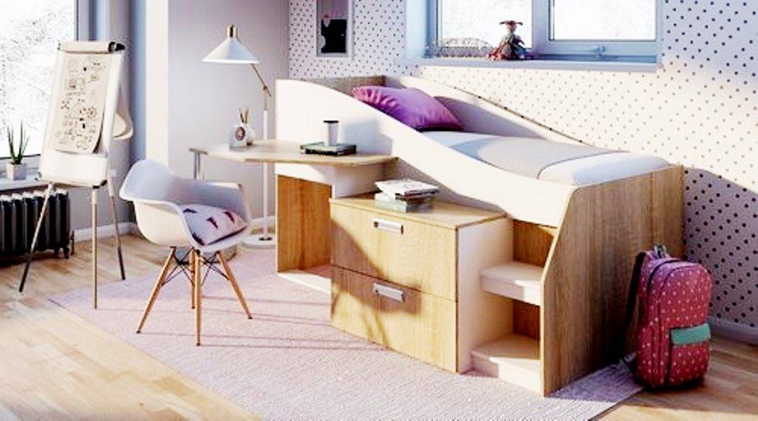 Товар от отечественного производителя. Относится к универсальному типу. Подходит как девочкам, так и мальчикам. Габариты спального места: 80*190 см. Материал изготовления – ЛДСП. Общий вес – 131 кг. Перечень предметов: