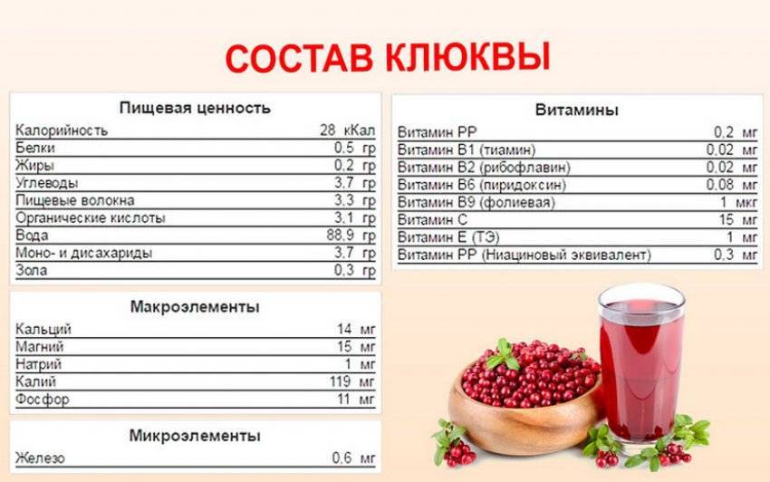 Клюквенные плоды богаты биоактивными соединениями, среди которых дубильные вещества, эфиры и антиоксиданты. Содержатся в клюкве и такие компоненты, как:
