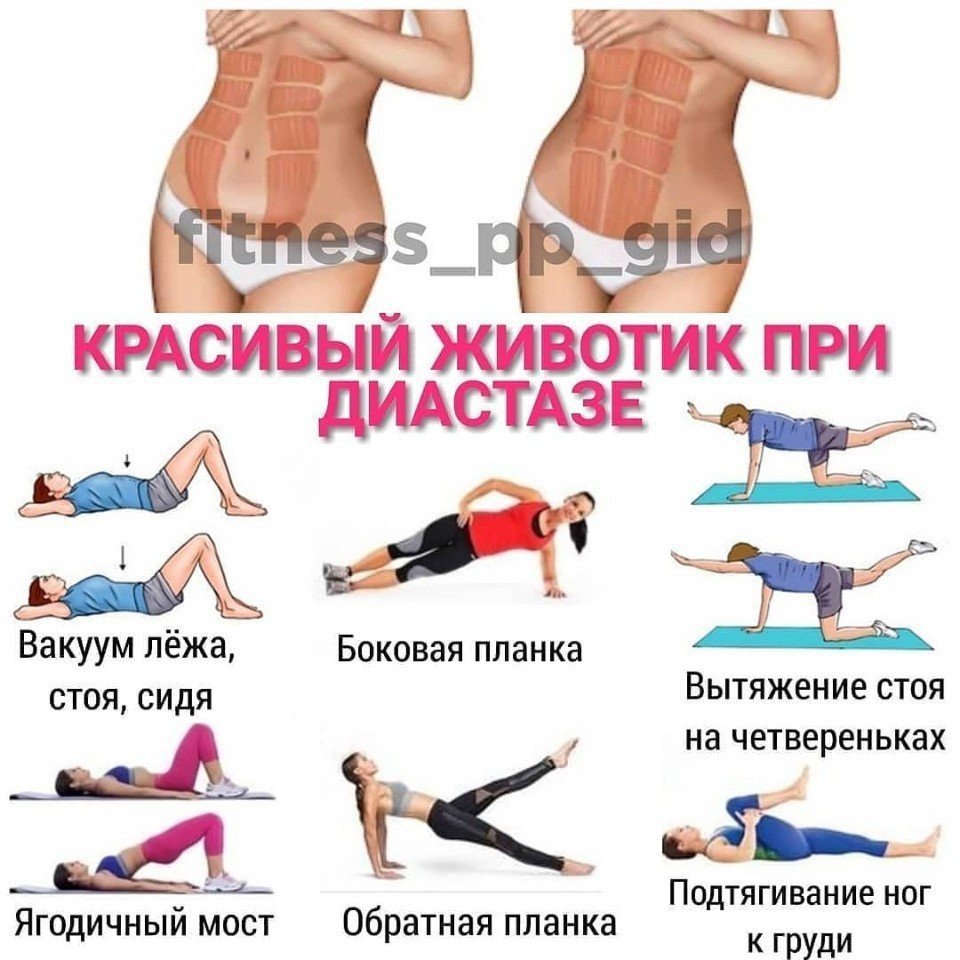 Чередование вдоха и выдоха при выполнении упражнений увеличивают их эффективность. Существуют упражнения, которые необходимо исключать из своей программы, это те, которые могут способствовать возникновению грыж (становая, подъем таза-березка). В данном случае лучше использовать утягивающий пояс или поддерживающий корсет. При диастазе рекомендуется только сбалансированное питание, продукты должны помогать пищеварению, обязательно наличие клетчатки. Сначала лучше выбирать упражнения дыхательного типа – «пульсирующий живот», «втягивание живота», а затем переходить к более сложным, например, «модернизированный велосипед» или «чередование дыхания».