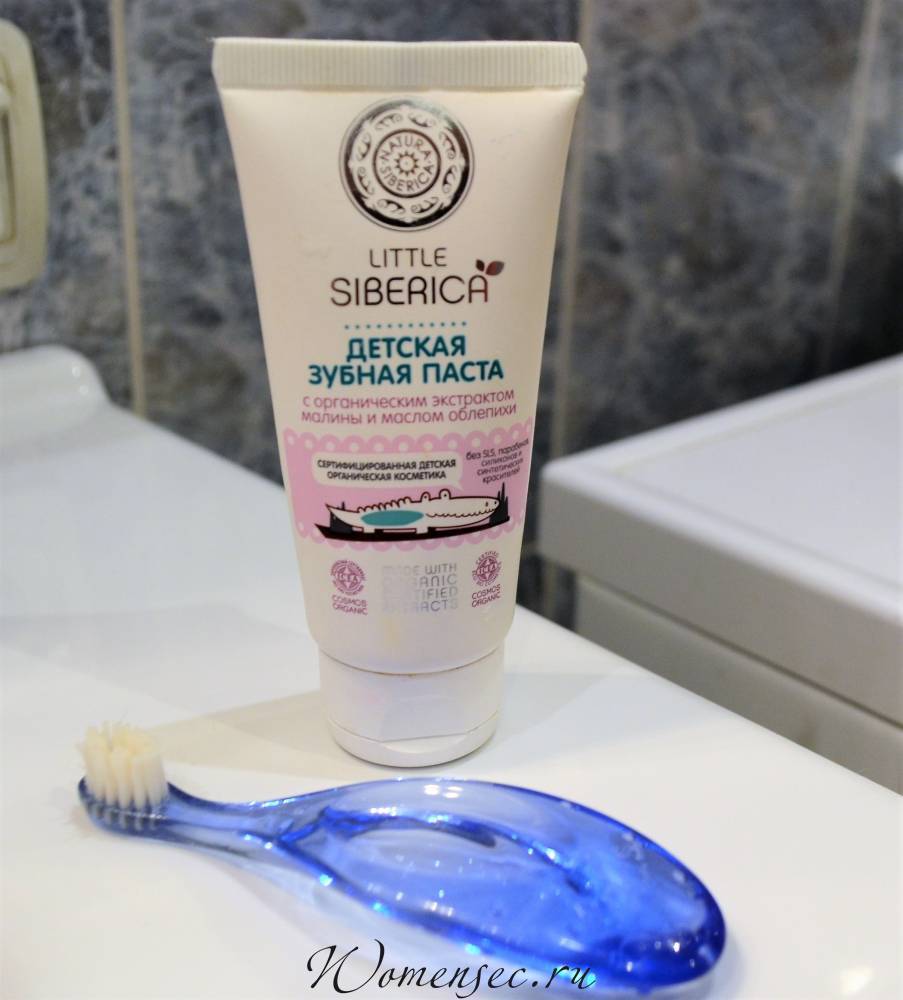 Детская зубная паста с органическим экстрактом малины NATURA SIBERICA с 2-3 лет, так как все-таки содержит Sodium Coco-Sulfate (родственник SLS) и Sodium Benzoate.”