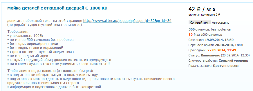 Но все же я успел там сделать один заказ, не помню, правда, расценки. Но что-то в пределах 5-10 рублей за 1000 знаков. За выполненный заказ получил где-то рублей 20. Конечно, это гроши, но по сравнению с теми же серфингом, эту сумму нужно было мне набивать целый день. Статью же я написал минут за 40.