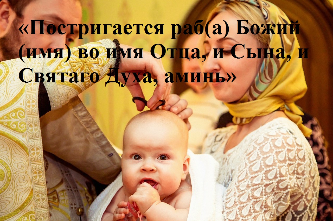 Процессом состригания волос символизируется покорность Богу, своеобразное жертвоприношение. Собственно этим крещение считается законченным. Далее происходит процесс воцерковления. На своих руках батюшка проносит ребенка по храму, ознакамливая с церковью.