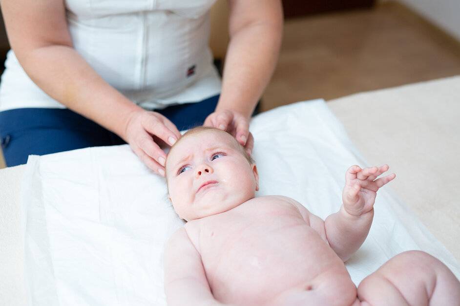 Однако если выраженность позиционной кривошеи слишком высока, и родители не стараются помогать ребенку менять положение в течение дня, то вслед за установочной кривошеей у младенца может последовать плагиоцефалия — асимметрия черепа, вызванная длительным нахождением головы в одном положении.