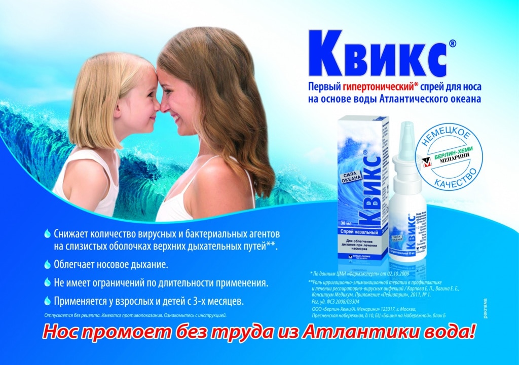 Крохе постарше допустимо делать промывание всеми видами «Квикса». Максимальное суточное количество процедур для детей — 3. За один прием следует делать 1-2 впрыскивания в каждую ноздрю. Взрослым людям