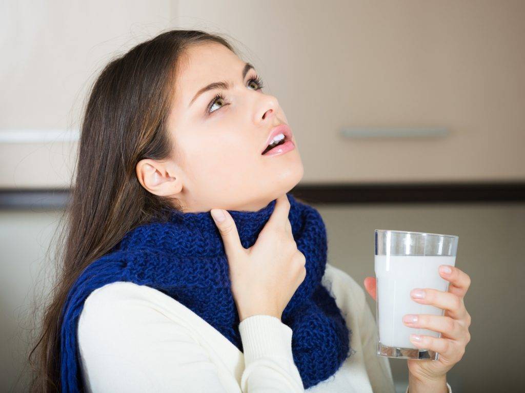 При боли в горле рекомендуется продолжать грудное вскармливание. При простудных заболеваниях с грудным молоком не происходит никаких изменений. Если же прекратить грудное вскармливание, то увеличивается риск развития лактостаза, так как при повышении температуры кормящая женщина более подвержена данному заболеванию. На третий день организм начинает выработку интерферона (естественного противовирусного средства), а на пятый — антител к заболеванию. При грудном вскармливании иммунитет от мамы передаётся малышу.