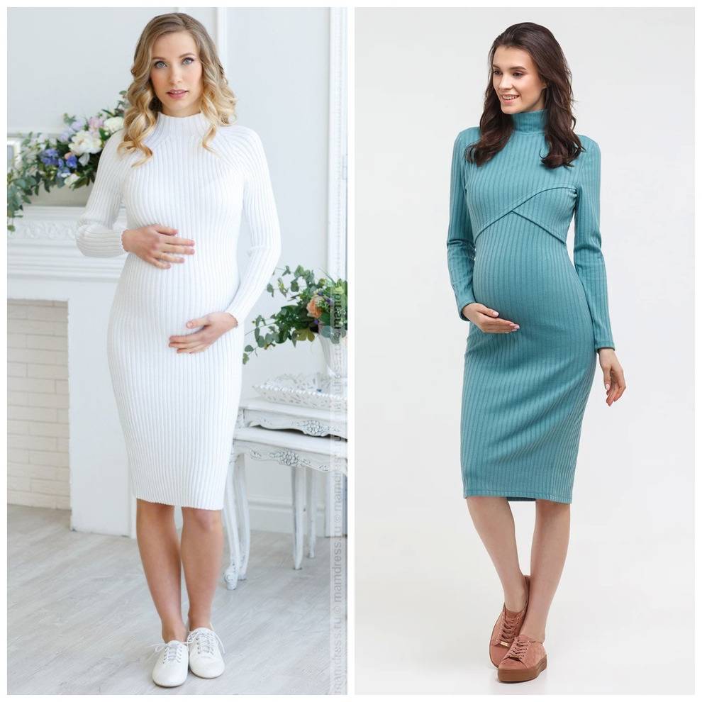 Времена, когда беременность тщательно скрывалась и вуалировалась, позади. Современные беременные женщины смело могут себе позволить платье в обтяжку длиной до колен. Как правило, из плотного трикотажа. Эти модели могут быть повседневными, элегантными и даже дизайнерскими, предназначенными для выхода в свет. В прохладную погоду достаточно накинуть на такое платье пальто свободного кроя и — вуаля!