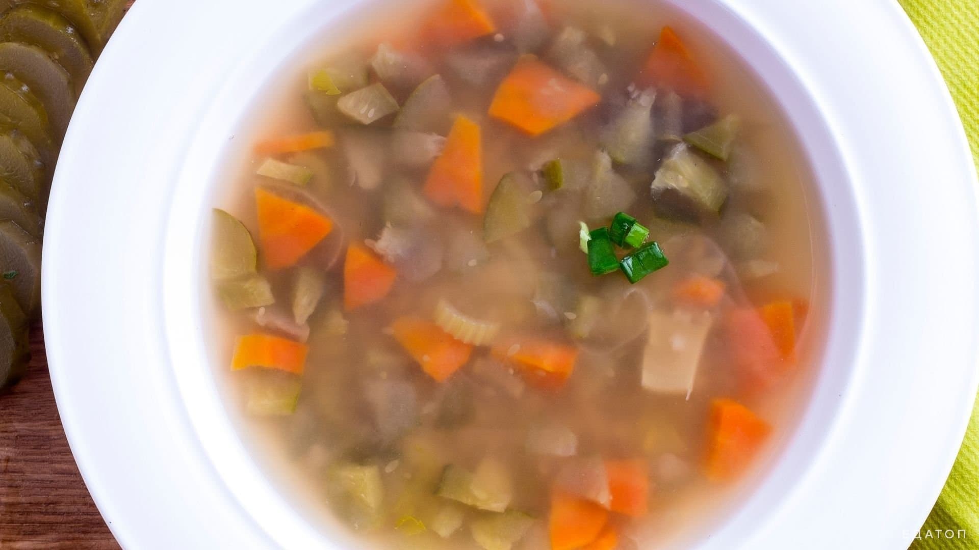 - 200 г ламинарии пожарить, добавить в емкость с рассольником и варить еще 5 минут.