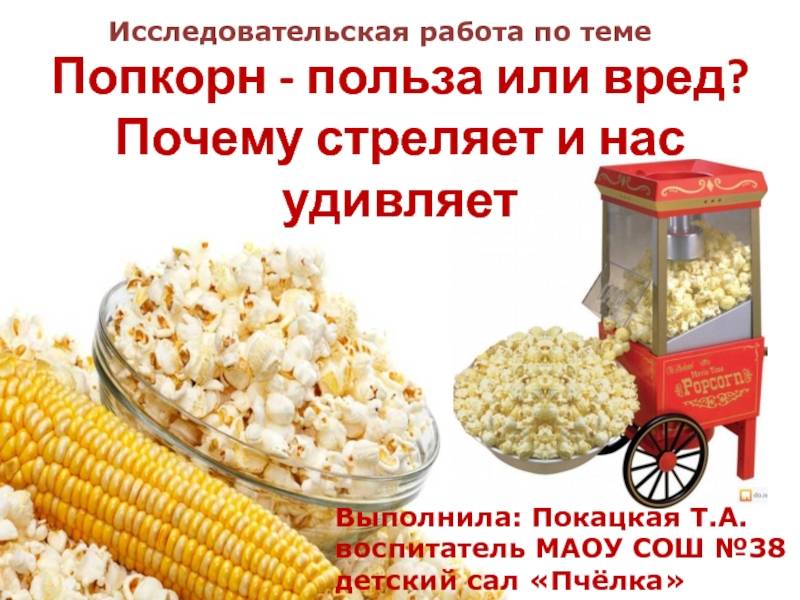 Русские врачи признают, что попкорн, выпущенный в массовом производстве, с разными добавками, сладкими и солеными, вреден для организма, а особенно детского.