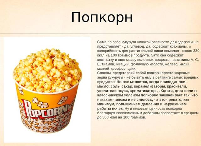 Попкорн: состав и калорийность