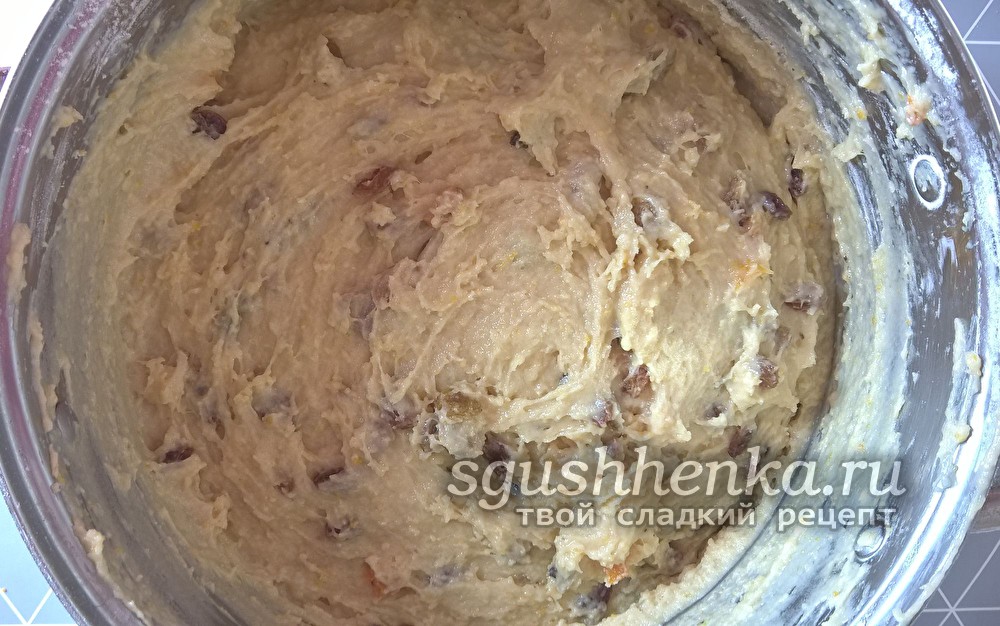 Это основа, которую можно наполнить любыми сухофруктами, например, берут 400 гр темного крупного изюма, 300 гр кураги. В качестве натурального ароматизатора добавляют цедру 2 средних грейпфрутов. Для украшения подойдет сахарная пудра, поскольку такие куличи готовили без привычной глазури.