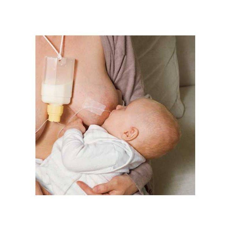 - В случае нехватки грудного молока, накладка вместе с трубочкой для докорма может завершить процесс кормления (с использованием смеси) как альтернатива бутылочке.