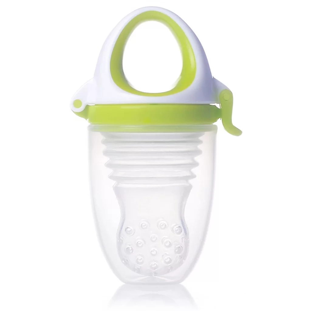 Недорогой аксессуар с яркой цветной ручкой. Можно выбрать модель, например, с желтой, красной или зеленой. Подходит для использования, начиная с 6 месяцев. Внутрь можно укладывать любые выбранные продукты: вареное мясо, овощи, свежие фрукты и ягоды.