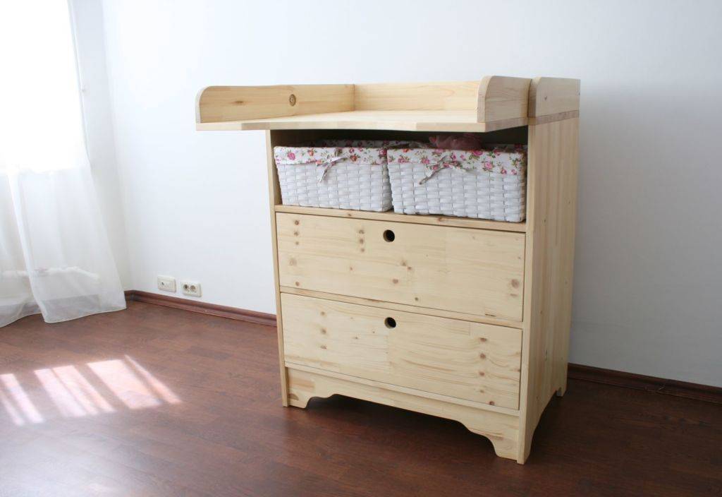 Не принесут вреда здоровью малыша изделия, изготовленные из дерева, МДФ. Практичная пеленальная поверхность требует ткани с водоотталкивающим эффектом.