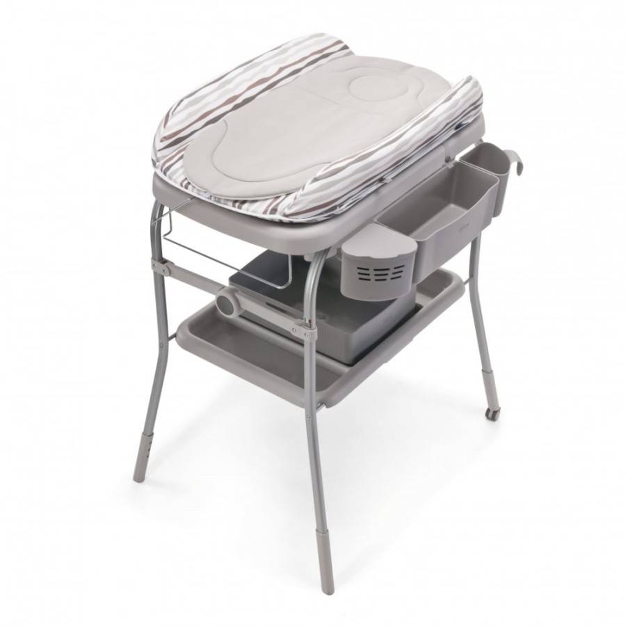 Хорошо, если в ванночке будет функция фиксации откидной крышки Значительно упрощают работу со столиком наличие полок, вешалок, памперс-депо, карманов, которые можно укомплектовать самыми необходимыми вещами, чтобы всегда иметь их под рукой и не отвлекаться, отыскивая предметы по квартире.
