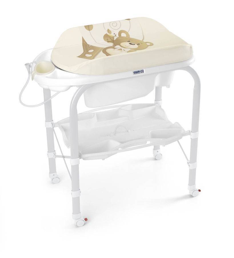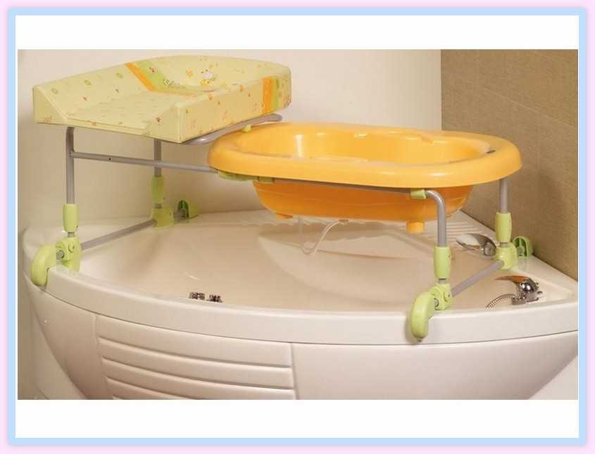 Подобные конструкции ставят в ванной комнате. На них очень удобно раздевать и купать малыша, а сама ванночка находится на комфортной высоте. Вам не придется наклоняться, чтобы удерживать в воде ребёнка. Сама ванночка сравнительно небольшая.