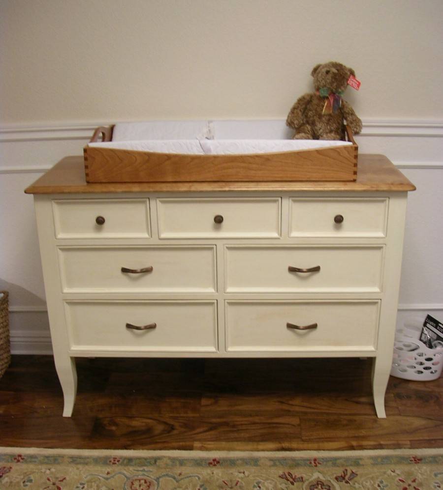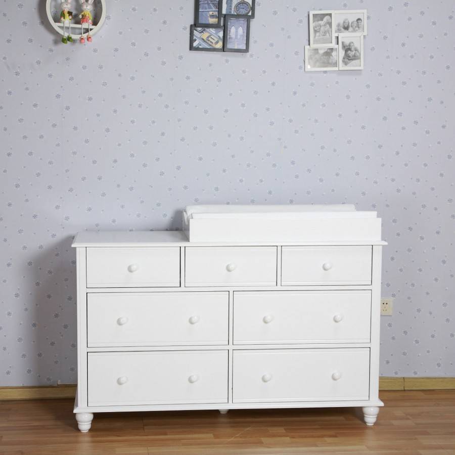 Это уже полноценная мебель с удобными выдвижными ящиками для хранения белья и одежды. После того, как малыш подрастет, верхние борта с крышки можно снять, и комод станет самой обычной мебелью. Правда, стоит такая конструкция чуть дороже. Бывают комоды с накладными столиками.