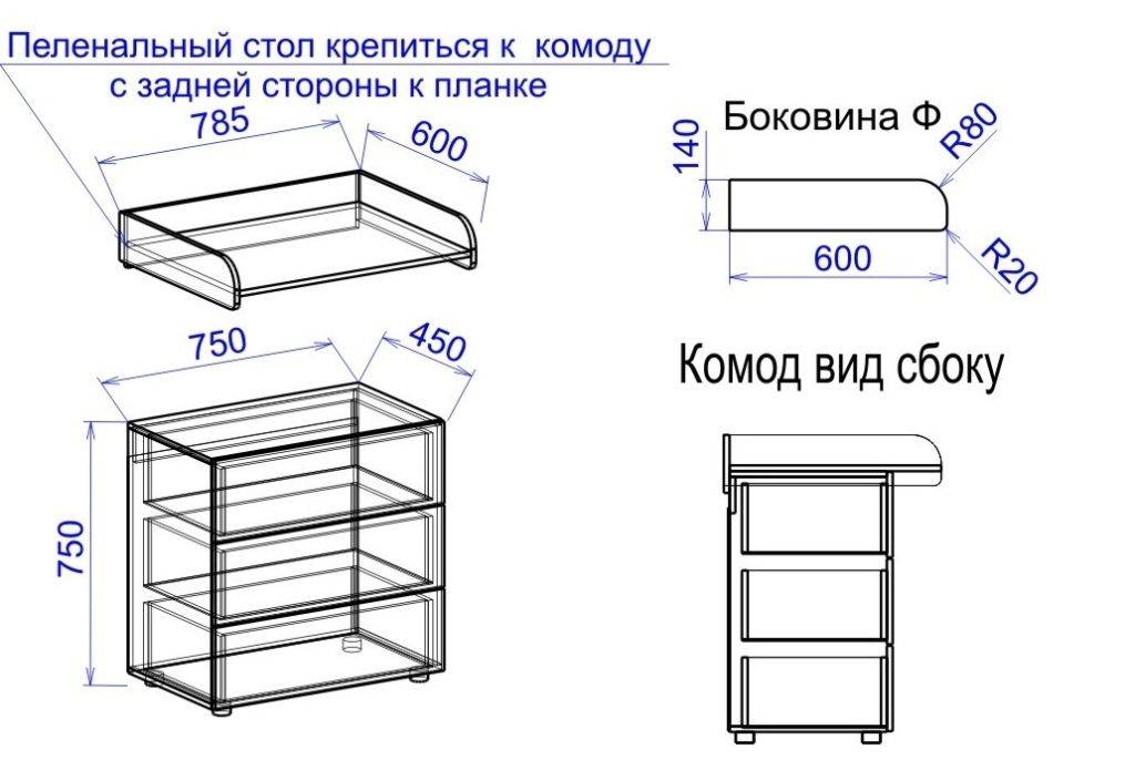Пеленальный столик, чертеж с размерами