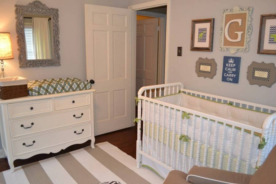 Пеленальный комод может располагаться в разных частях спальни, но часто он устанавливается вдоль стены помещения. Его ширина тогда практически не имеет значения, так как он все равно не будет мешать хождению по комнате.