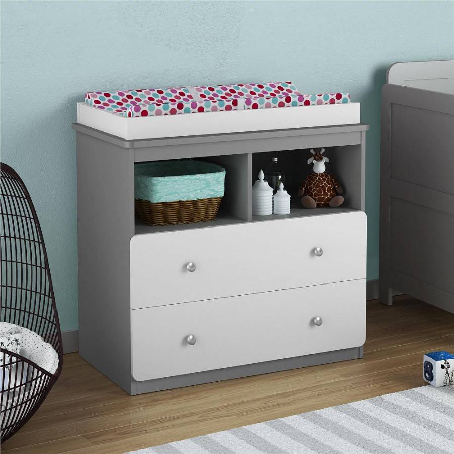 - ДСП. Это самый дешевый из возможных вариантов. К недостаткам древесно-стружечных плит относят низкую прочность и влагостойкость. Бюджетный и относительно качественный вариант — комоды для новорожденных из ламинированных ДСП, так как защитная пленка неплохо предохраняет место для пеленания от влаги.