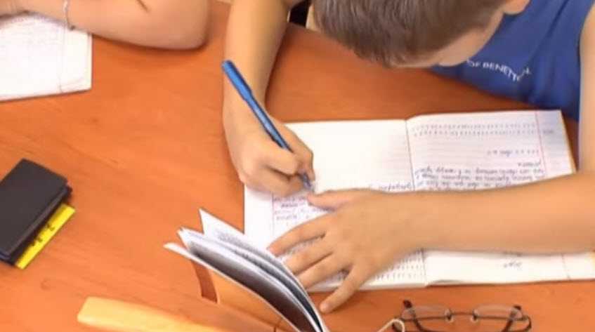 Школьник неправильно располагает тетрадь на столе