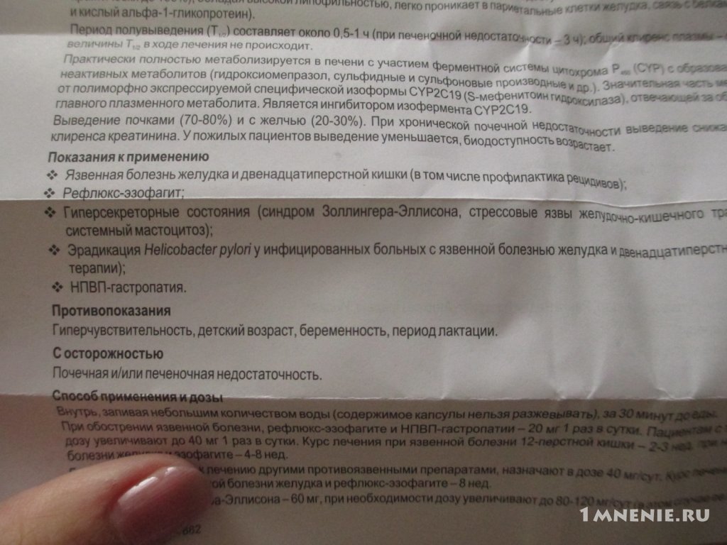 - Действующее вещество: Омепразол 20мг.