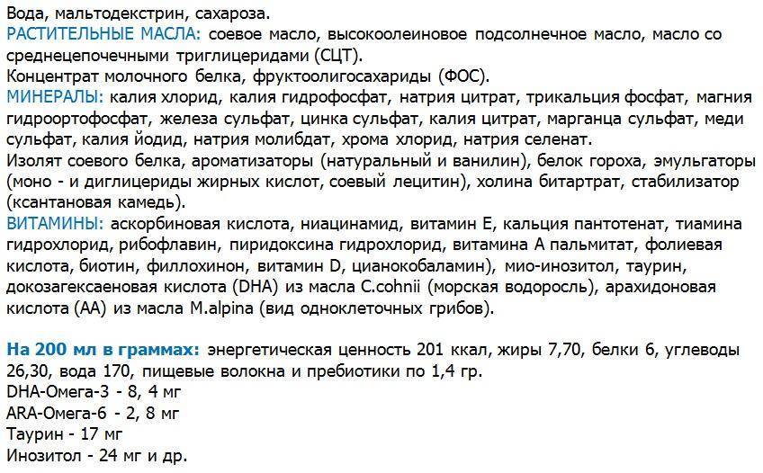 Кроме того, в состав входят пребиотики, которые ответственны за создание благоприятной микрофлоры в кишечнике. Благодаря им ребенок не будет ощущать дискомфорт, вздутие, тяжесть в желудке.