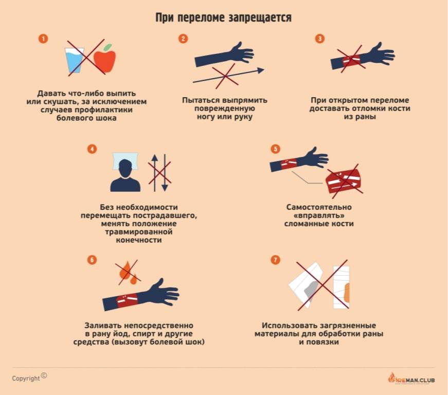 - вправлять поврежденную конечность, если вы не можете точно определить характер травмы;