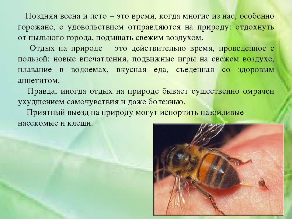 При укусе пчелы НЕ ВЫДАВЛИВАЙТЕ жало.