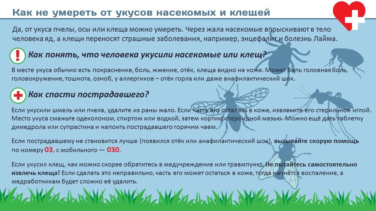 Конечно, лучше использовать специальные репелленты и прочие средства для защиты от насекомых и для профилактики их укусов. Но если все же спастись от нападения не получилось, пользуйтесь советами нашей статьи, и — не медлите с обращением к врачам при появлении осложнений!