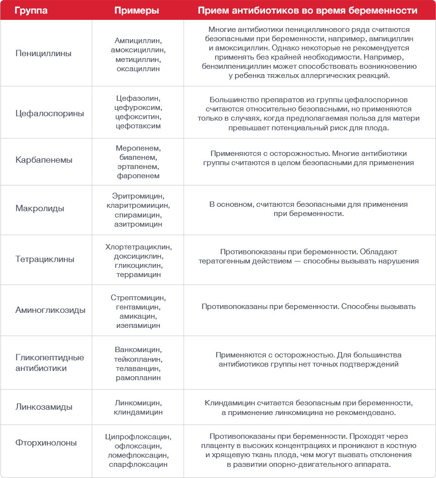 Какие антибиотики можно принимать при беременности?