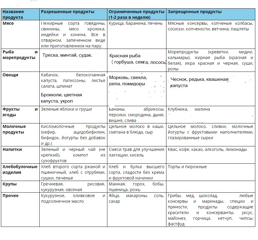 Таблица продуктов для кормящей мамы
