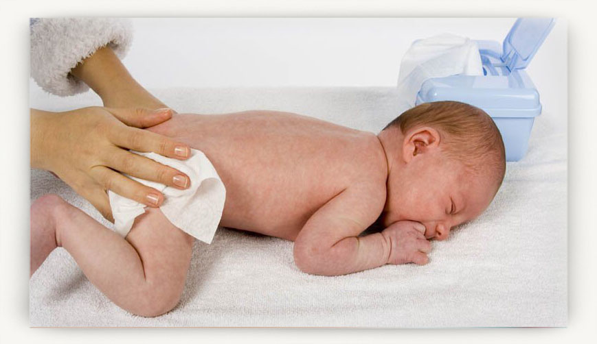 - Выбирайте качественные подгузники и влажные салфетки для детей с натуральным составом. Меняйте подгузник не реже чем через 4 часа и после каждого стула. Позволяйте крохе принимать воздушные ванны.