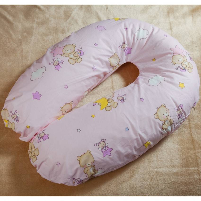 - U-образные. Изделие напоминает валик, который способен поддерживать спину женщины и руки. Подушка свободно огибает тело женщины, создавая кокон для полноценного телесного контакта и удобного кормления. Такая форма подушки также рекомендуется для мамы близнецов.