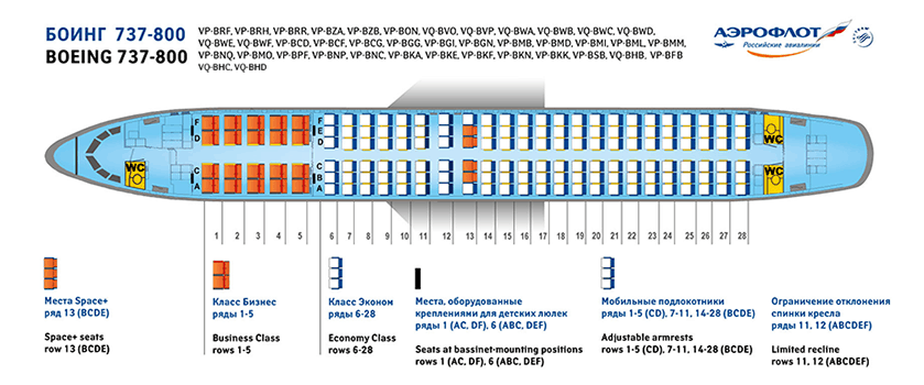 Схема салона самолета Boing 737 (aeroflot.ru)