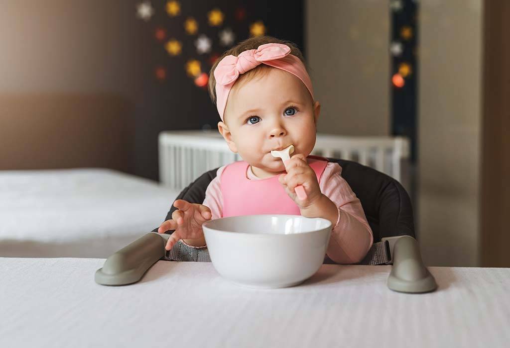 Еда дается с ложки. Лучше использовать пластиковую ложечку, которая считается наиболее безопасной для детских десен.