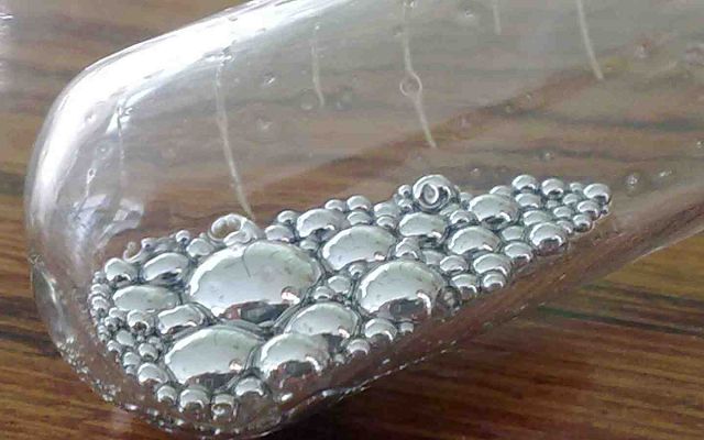 Крупные шарики ртути легко собираются шприцем или спринцовкой. Емкость для сбора должна быть изолированной пластиковой, либо стеклянной. Желательно налить в емкость, куда вы будете складывать шарики, воду. Ртуть по своим свойствам тяжелее воды, в результате чего шарики ртути будут находиться на дне емкости и пары ртути не смогут выходить на поверхность.