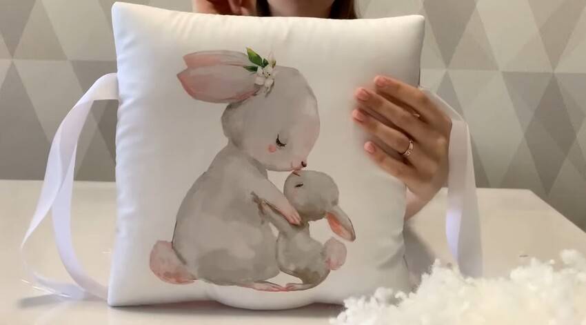 Припуски на швы оставляем большие — по 5 см, так как в подушках будет много наполнителя. Синтепон подойдет как тонкий, так и толстый, пришивать его не нужно, просто туго набиваем чехлы. Подушки маленькие поэтому он не будет сбиваться в одну сторону.