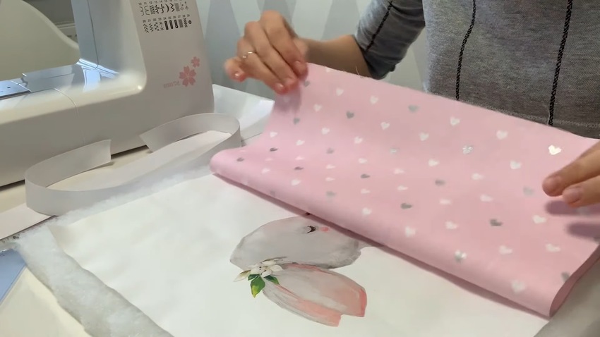 - Между двумя слоями ткани уложите синтепон и сшейте все части на швейной машинке