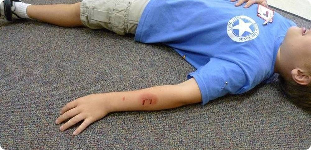 Что делать, если змея укусила ребенка? Если укус уже состоялся, необходимо оказать неотложную помощь пострадавшему. Любящая мать мгновенно бросится к ранке малыша и попытается высосать яд из крови. Такое мероприятие весьма небезопасно. Если во рту женщины имеются открытые ранки, что не является редкостью, не исключено заражение этим же ядом еще одного человека. В тех случаях, когда медицинское учреждение находится далеко от места происшествия, следует оказать помощь малышу самостоятельно. Для этого родители должны принять ряд мер безопасности после укуса: