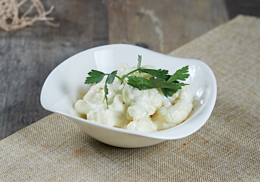 - Когда соцветия остынут, посолите их по вкусу, сбрызните небольшим количеством лимонного сока и заправьте натуральным йогуртом без добавок либо нежирной сметаной.