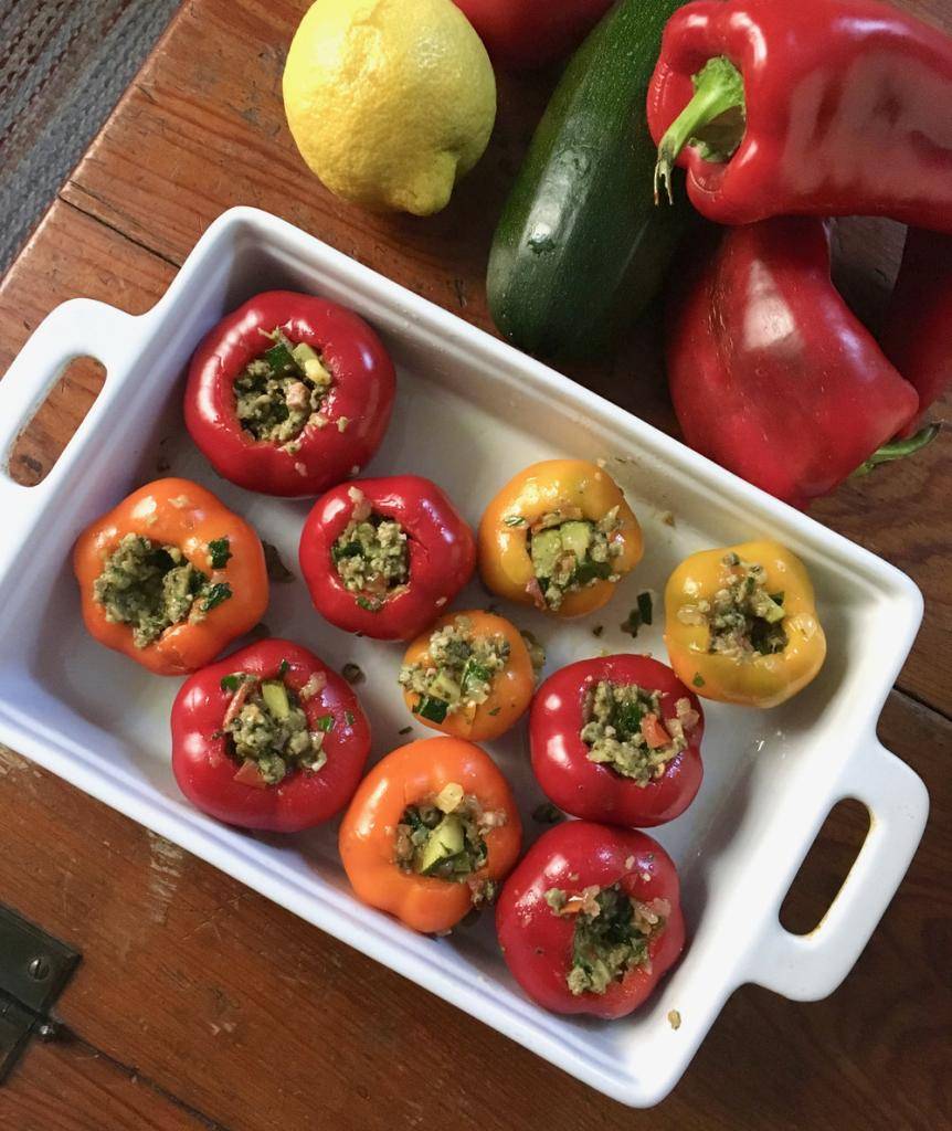 - Фаршированный перец залить готовым соусом и отправить в горячую духовку на один час.