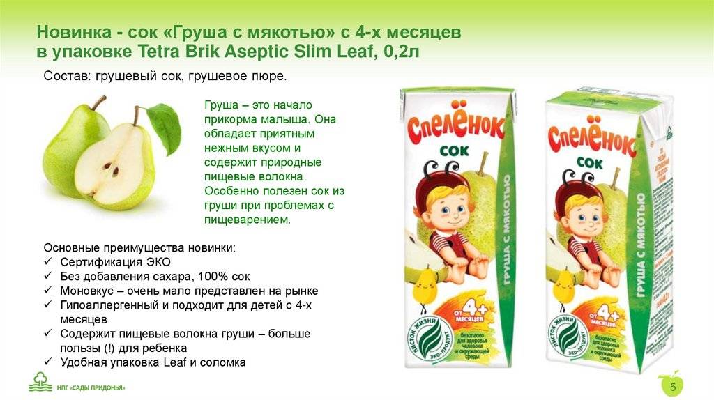 - Грушевое пюре дают грудничку не ранее шести месяцев, малышу на искусственном или смешанном вскармливании — с пяти месяцев;