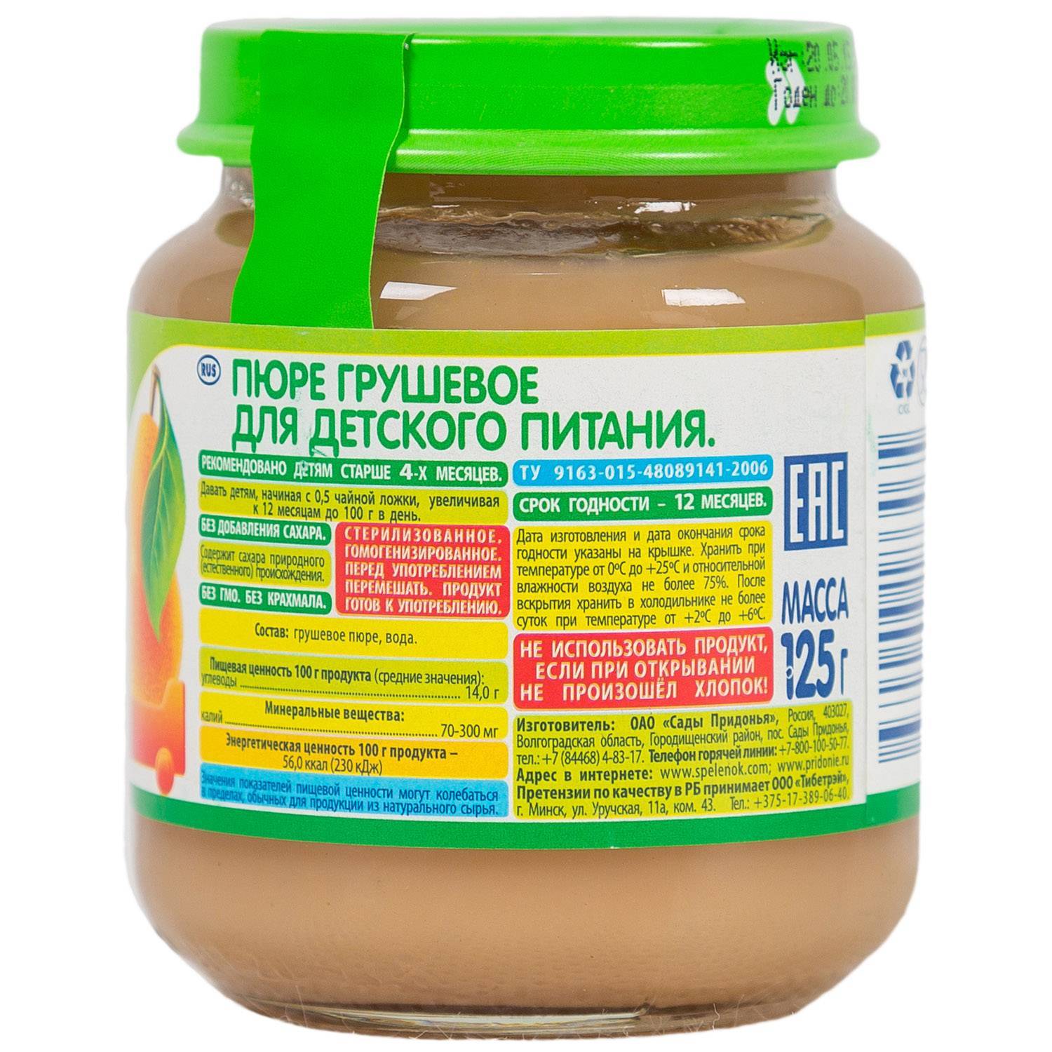 - Желательно готовить пюре самостоятельно, так вы будете уверены в составе и сроке годности продукта. Если вы покупаете готовое пюре, внимательно проверяйте содержимое и нормы хранения, целостность упаковки и рекомендации к возрасту.